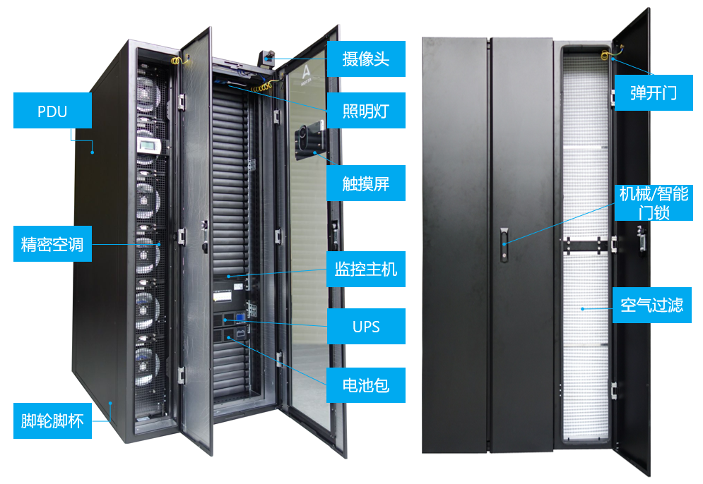 l 一體化設計的小型模塊化數(shù)據(jù)中心產(chǎn)品,集成了IT設備運行所需的主要物理基礎設施:機柜、UPS、蓄電池、配電、精密空調、動力環(huán)境監(jiān)控、安防及消防等系統(tǒng);